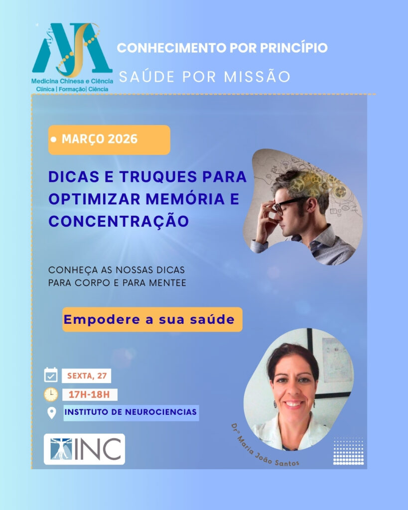 Brevemente Dicas e truques para optimizar memória e concentraçãoEmpodere a sua sáudePrograma: A sessão terá lugar no dia 27.03.2026, pelas 17-18horas, no Instituto de neurociências Inscrição Please enable JavaScript in your browser to complete this form.Please enable JavaScript in your browser to complete this form.Nome do Evento *Nome *E-mail *Telemóvel Telemóvel Mensagem E-mail MensagemEnviar