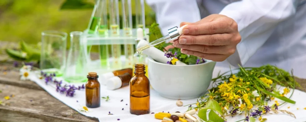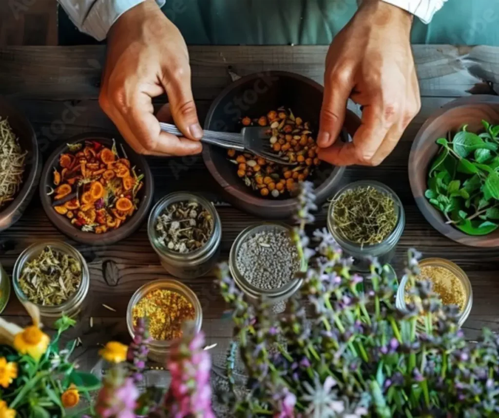 Terapia realizada a partir da prescrição de decocções, infusões, unguentos, óleos essenciais, granulados, cápsulas ou comprimidos feitos à base de partes de plantas ou animais. As substancias (ervas ou partes de animais) estão presentes sob a forma de fórmula e agem por sinergia funcional.